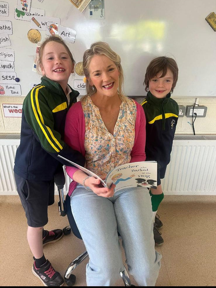 Bouncer bounds into the schoolyard, wagging his tail and ready for adventure.